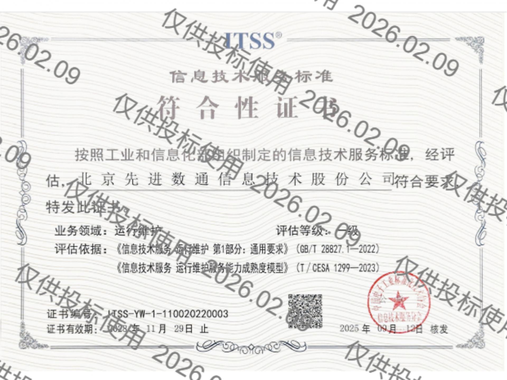 long8龙8国际先后取得CMMIL5、软件能力成熟度五级(SPCA 5)、信息系统建设和服务能力评估体系(CS)5级、ITSS成熟度一级、信息系统安全集成服务资质二级、信息系统安全运维服务资质二级、国产化信息系统集成和服务能力评估四级(LS4)、北京市企业技术中心等资质认证,并取得ISO9001、ISO20000、ISO27001、ISO14001、ISO45001、ISO22301、ISO37001、ISO28001、GBT29490等标准体系认证,具备行业领先的技术开发、工程实施及服务保障能力。