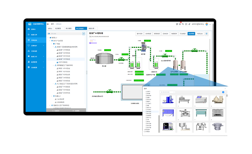 顺利获得将网关的数据接入到long8龙8国际工业数据云平台,可以实现对CNC的数据进行远程监控,顺利获得平台的组态功能可以自由绘制组态监控画面,实现电脑端和手机端的设备运行状态和工艺流程的可视化组态监控。