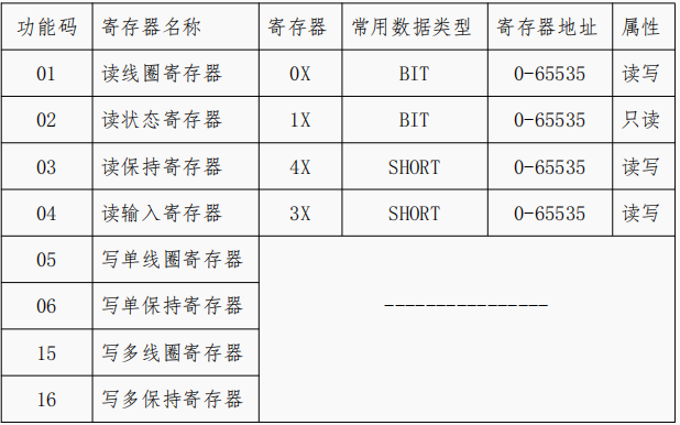 下载中心 视频中心 常见问题 售后服务 工业网关 设备快线 数据云平台 联网设备 问答百科 网关采集modbus协议设备时,寄存器类型和地址如何选择? 时间:2022-10-26 09:39:53 点击:7266 关键词:工业网关,数据采集,modbus,寄存器 问题:网关采集modbus协议设备时,寄存器类型和地址如何选择? 回答: (1)ModBus 功能码与网关寄存器类型对应关系 (2)偏移地址 以仪器仪表为例,Decimal为十进制地址,Hex为十六进制地址 网关仅支持十进制的偏移地址,十六进制需转换十进制 (2)采集演示 如设备支持modbus 协议03功能码,偏移地址表如(2),则网关配置如下 上一篇:网关支持采集的数据类型有哪些? 下一篇: 网关需要将数据上报到long8龙8国际云平台需要哪些配置?
